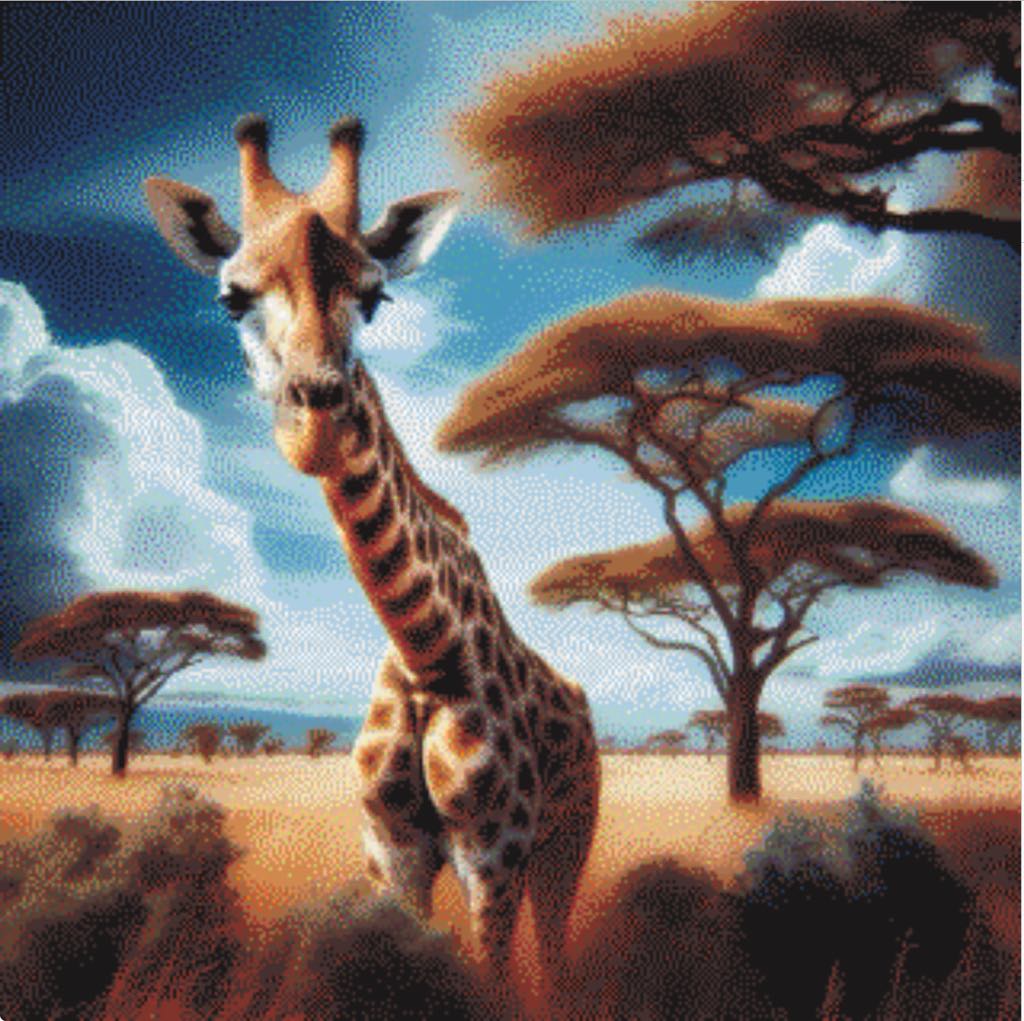 Dette værk er en fejring af naturens styrke og elegance. Det inviterer beskueren til at drømme sig væk i giraffens verden, hvor varme, lys og bevægelse smelter sammen i et levende og betagende kunstværk.